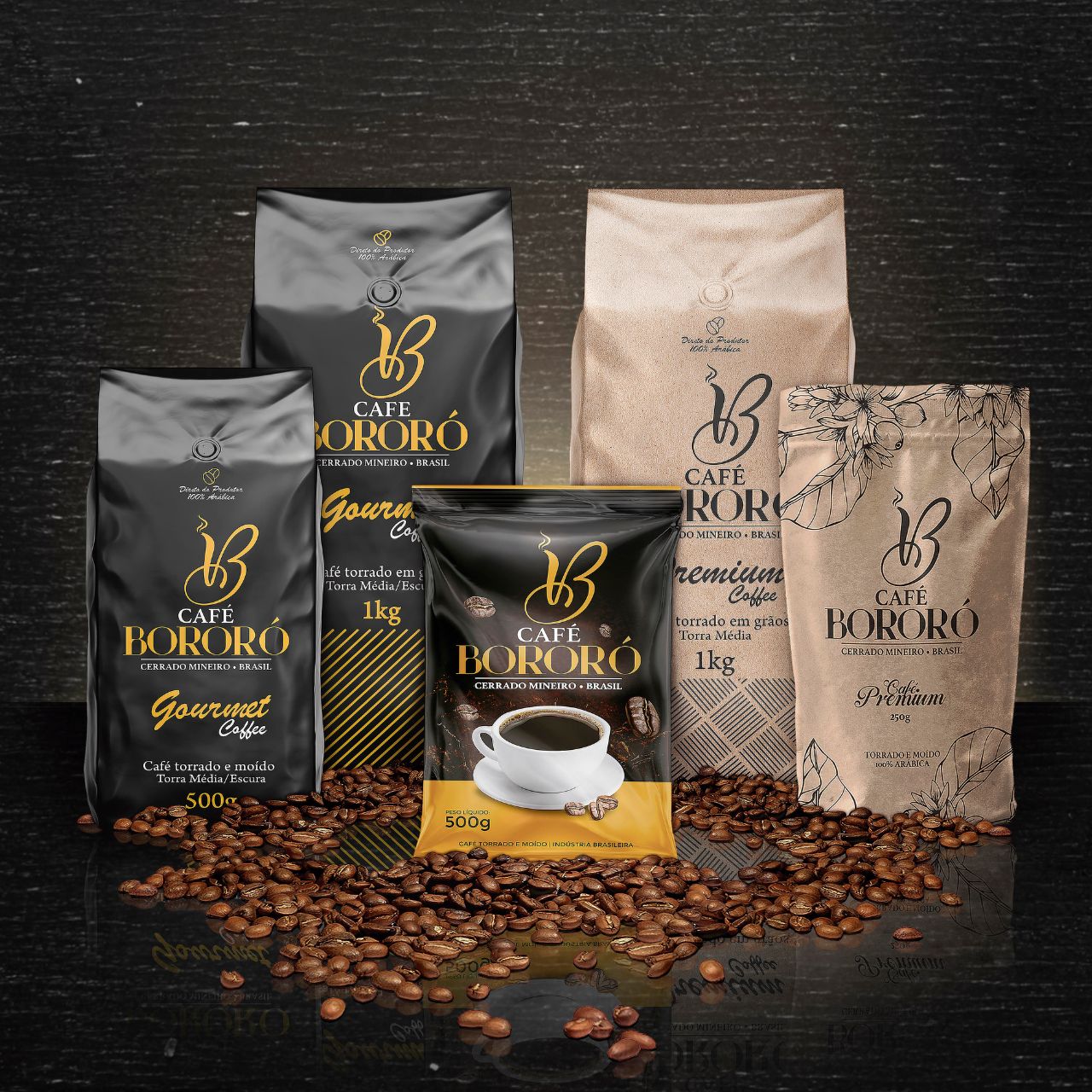 Atualmente trabalhamos com 3 tipos diferentes de cafés, Tradicional, Gourmet e Premium Coffee, todos eles são altamente selecionados e 100% Arábica.