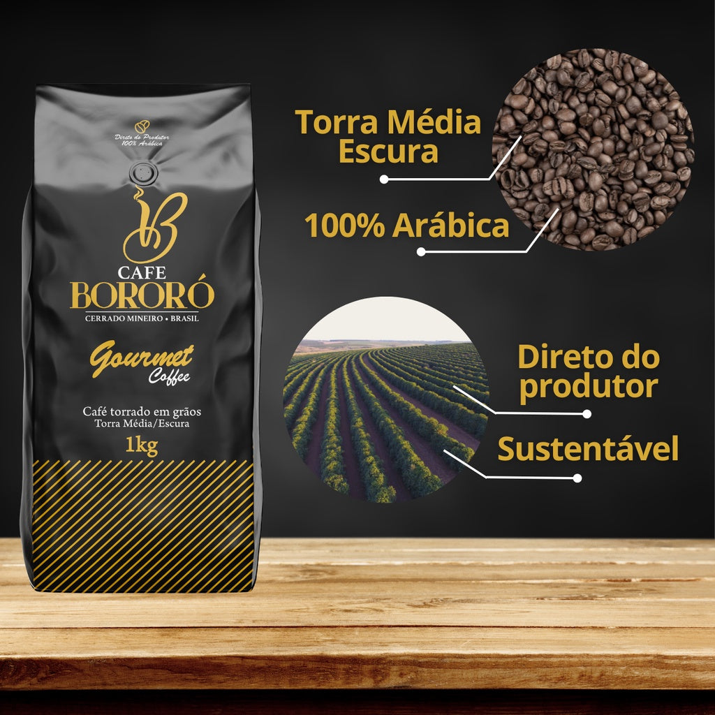 Café Em Grãos Torrado Arábica Gourmet 1kg Café Bororó