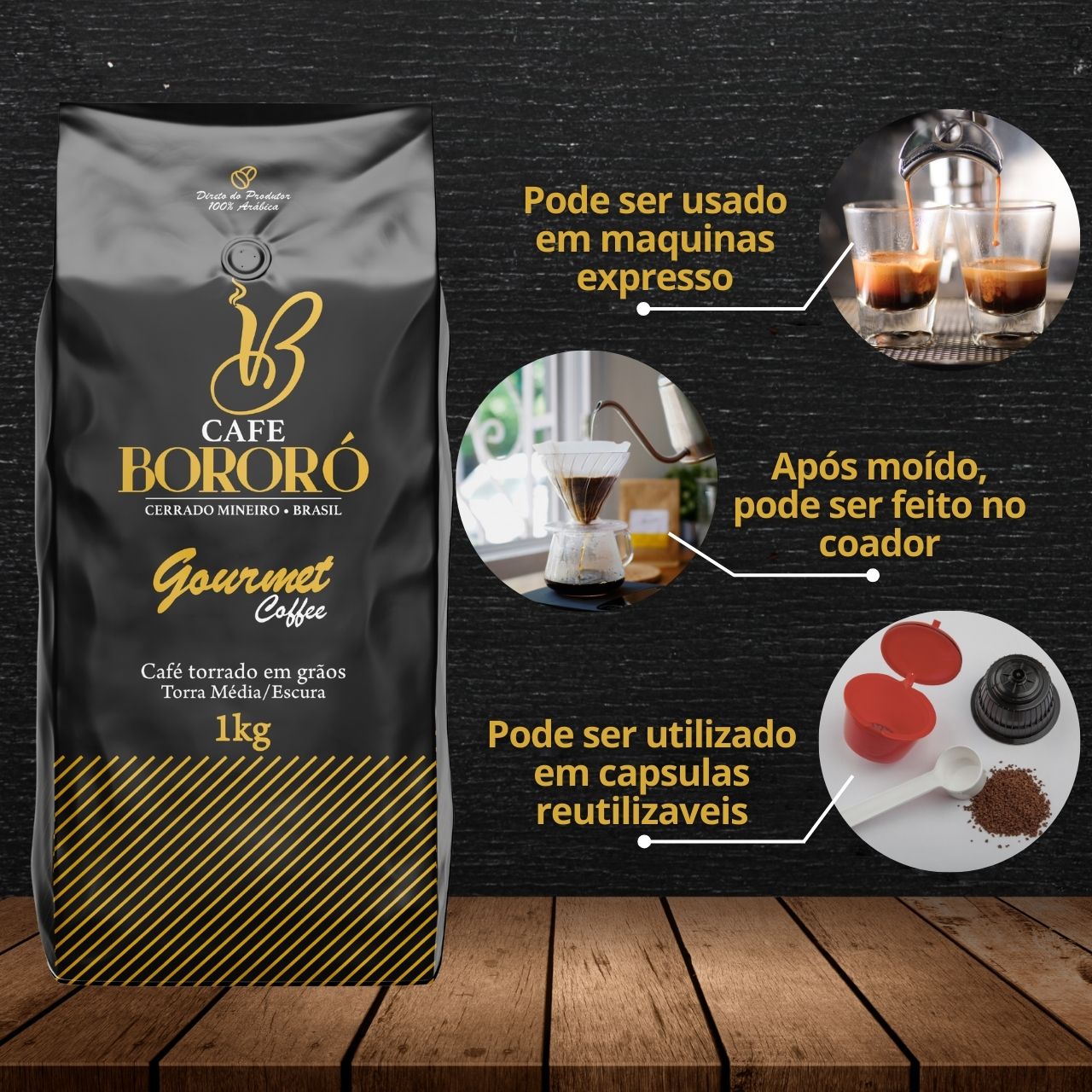 📢 CONTEUDO: A embalagem contém 1kg do Café Bororó Torrado Em Grãos Gourmet 100% Arábica.